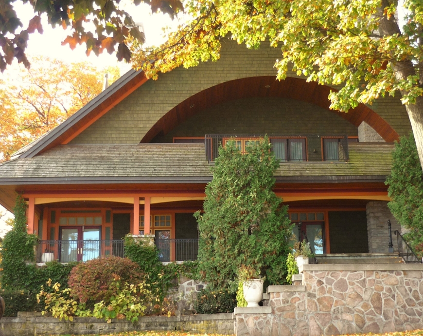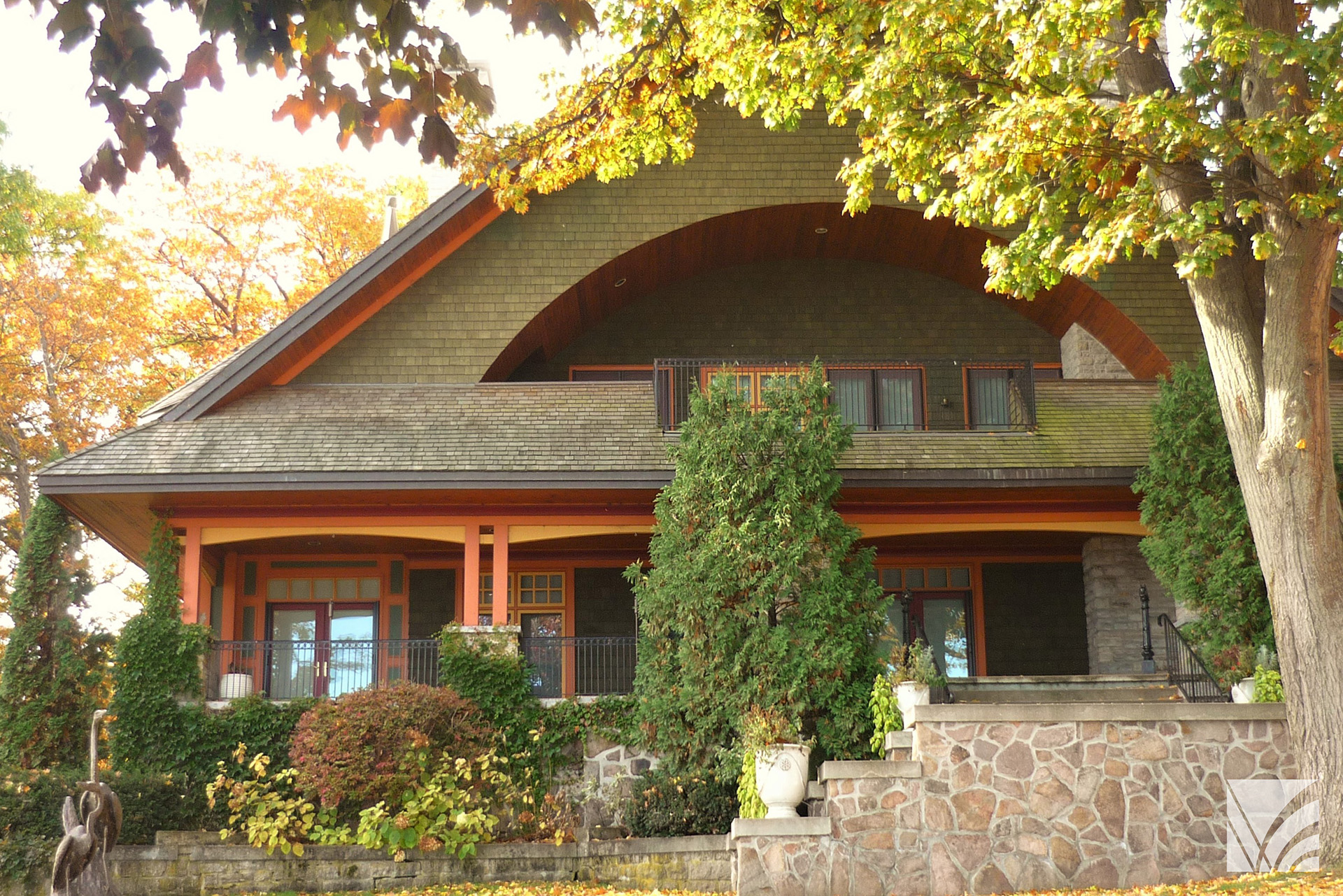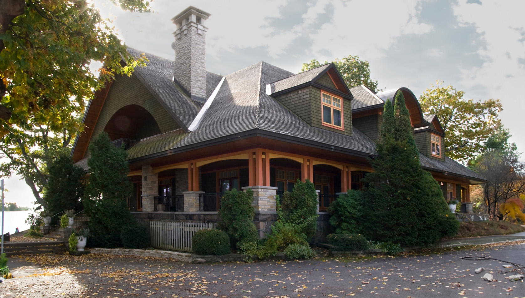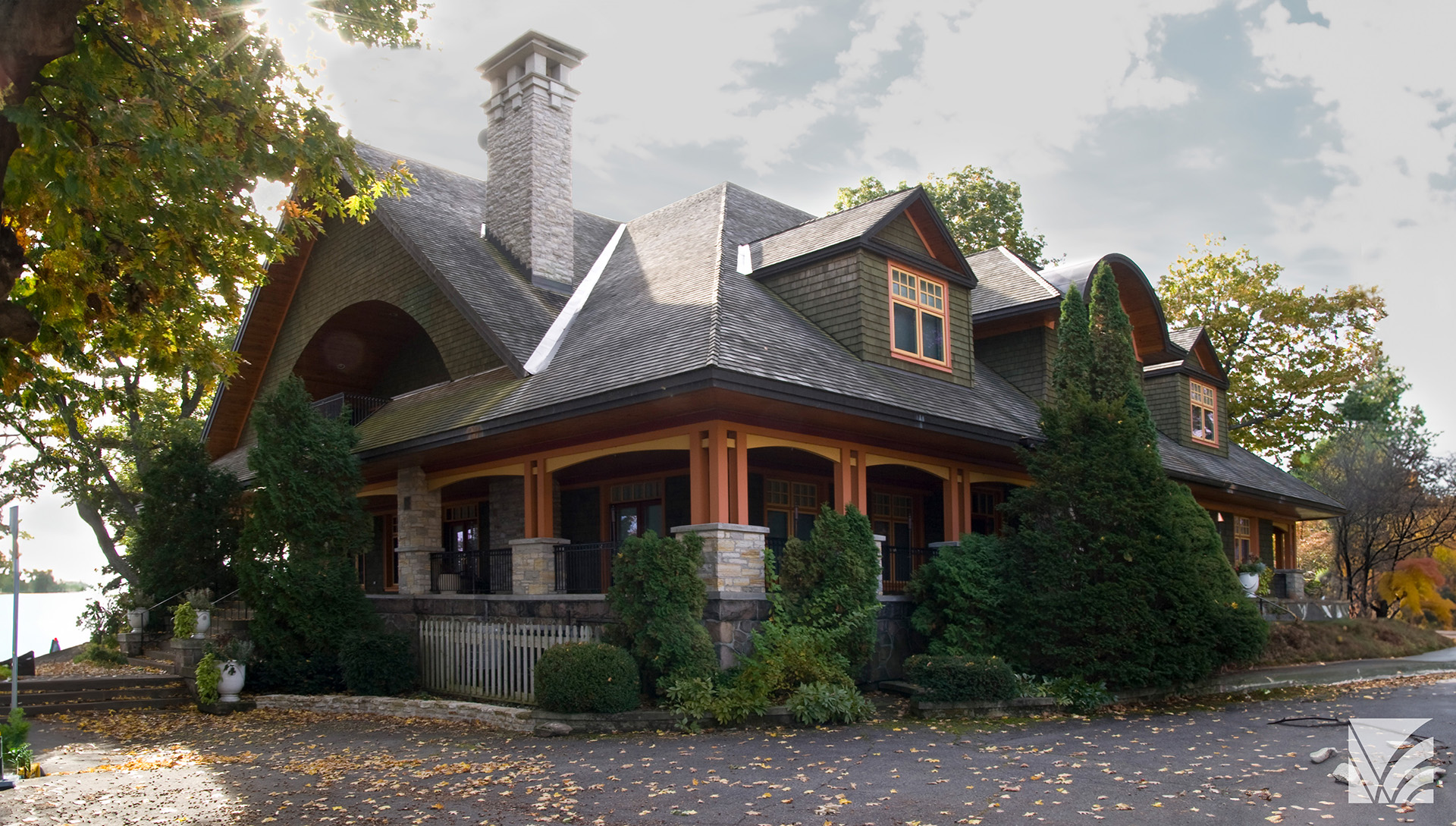 Nestled in the heart of Canada’s Thousand Island region, on the St. Lawrence River in Brockville, Ontario, this secluded family estate has been transformed from a simple bungalow with rich history into a grand shingle-style heritage home.