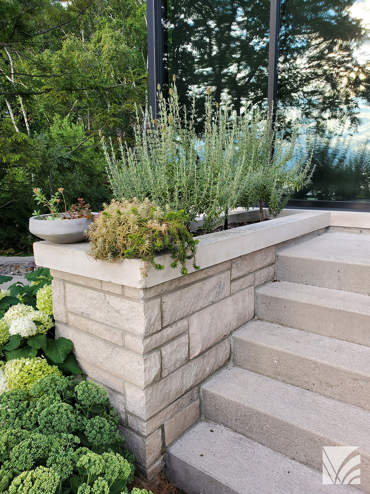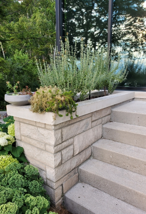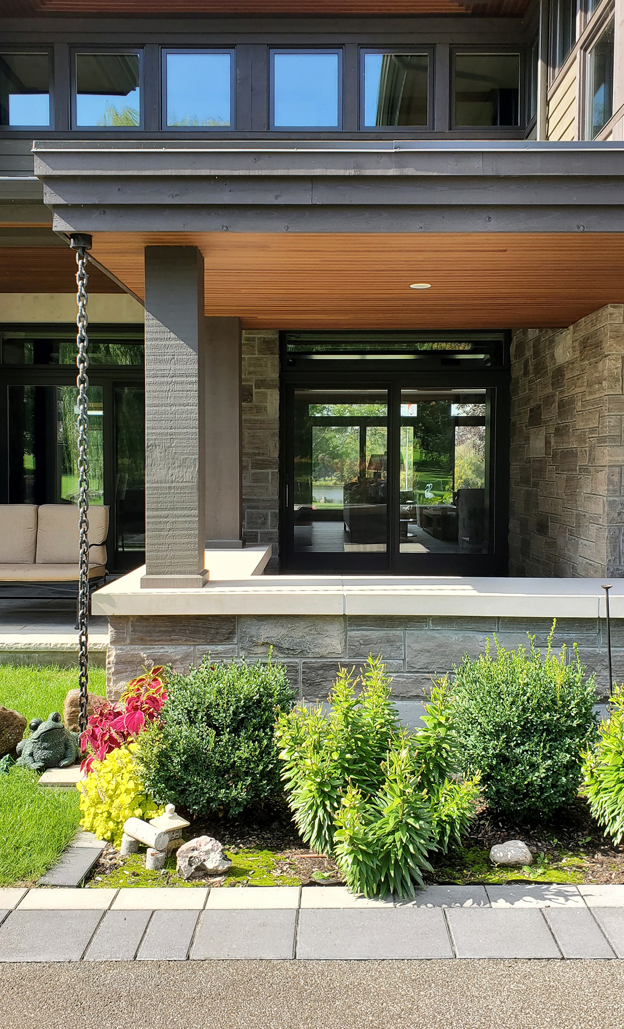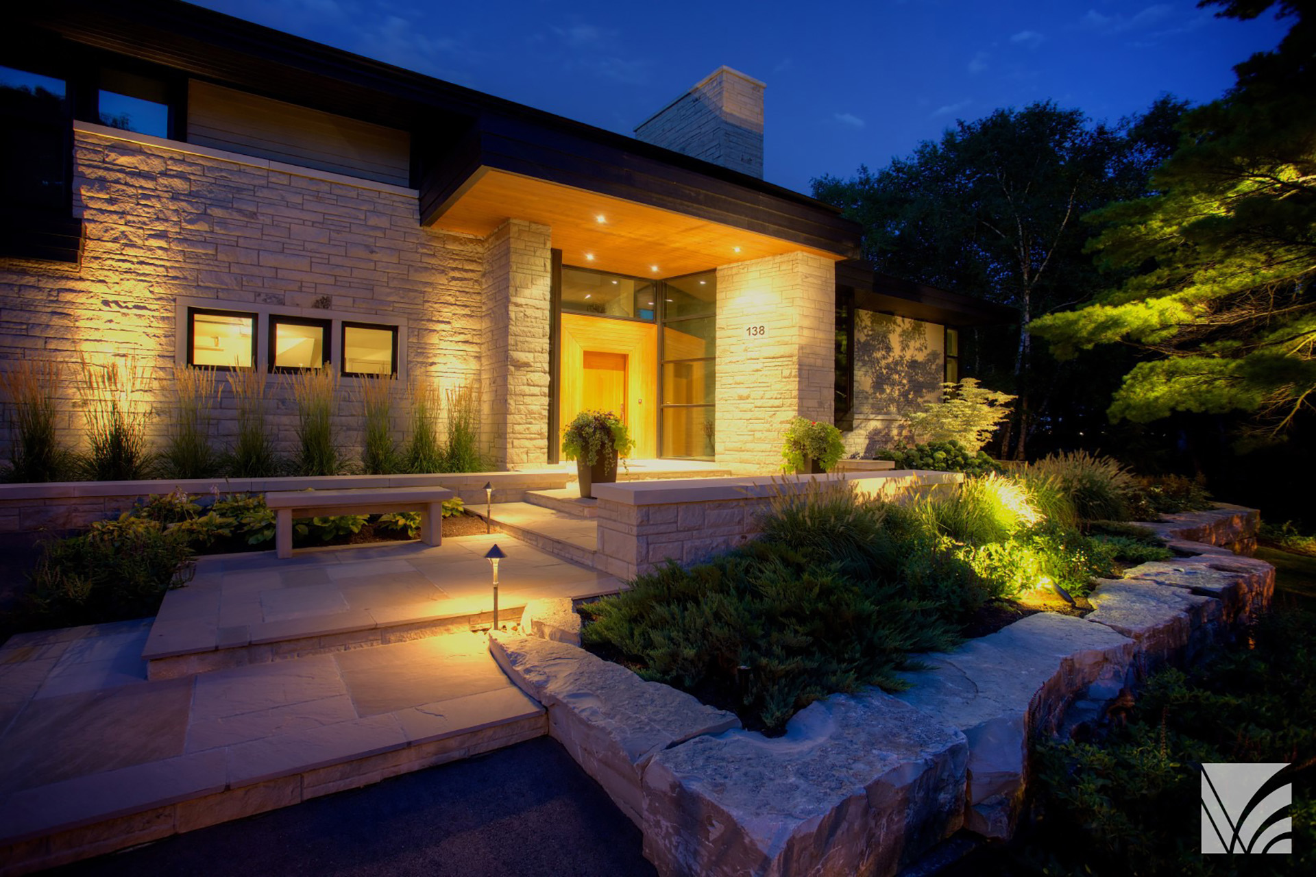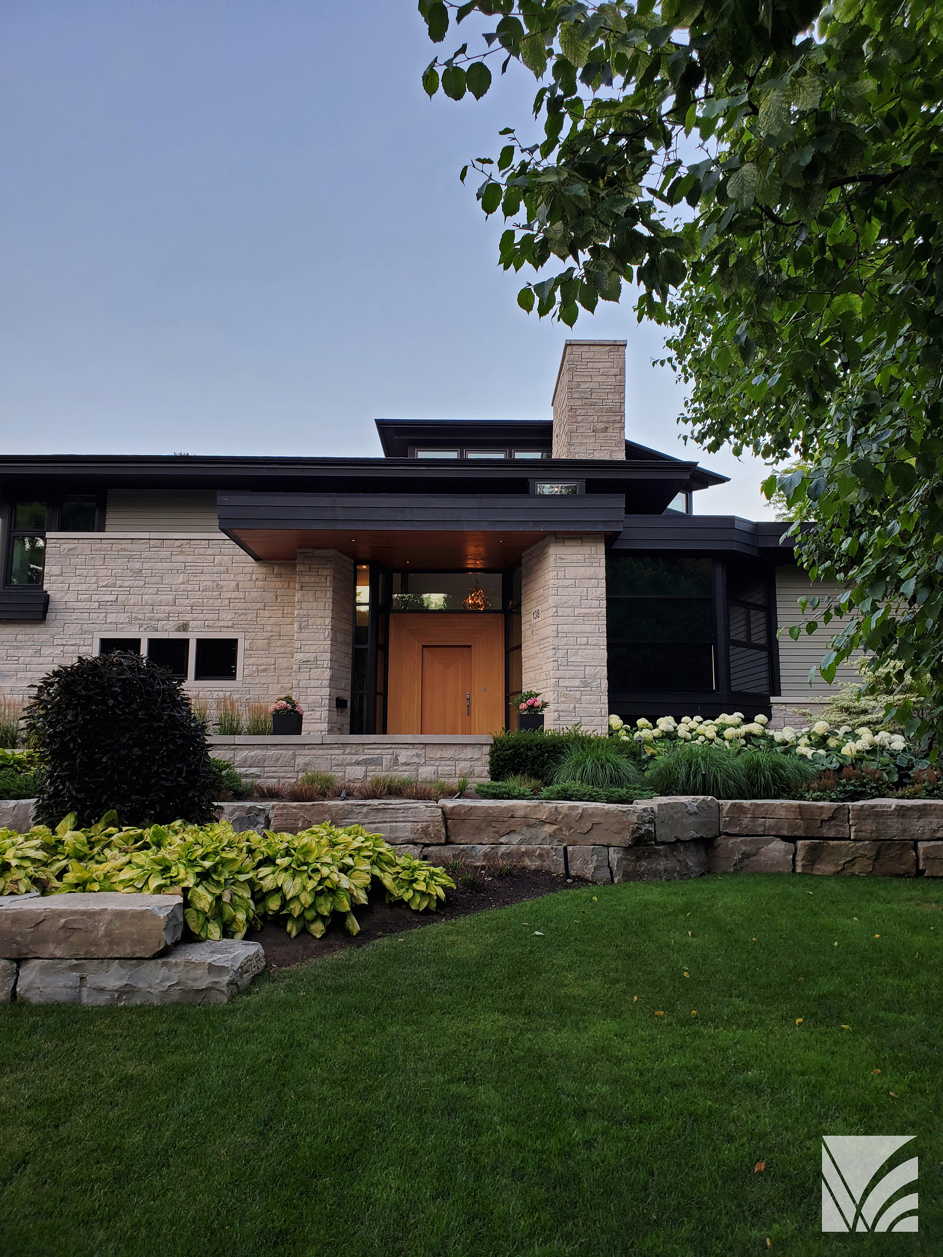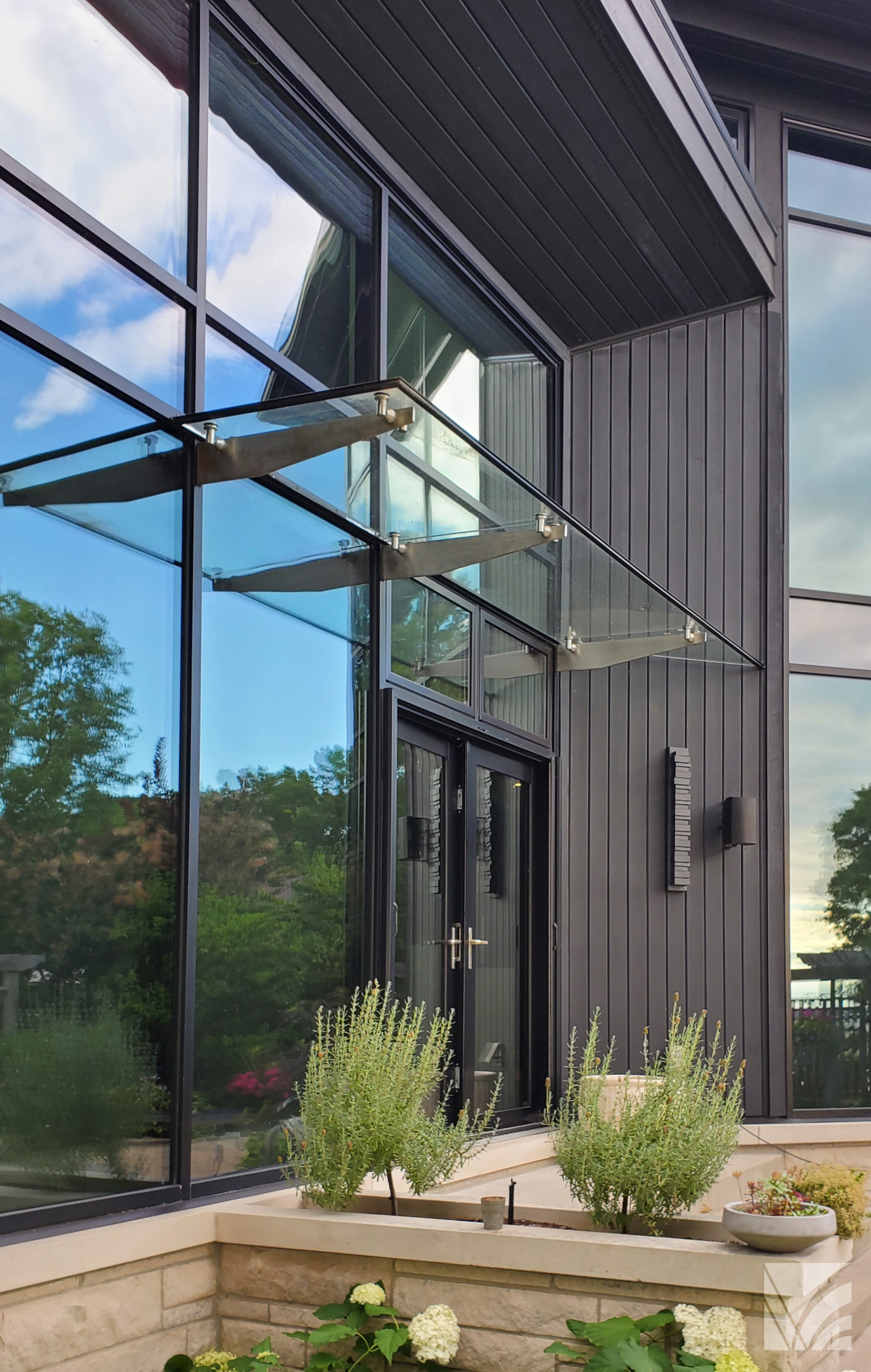 The Burlington House builds on the foundations of a pre-existing home from the 1960s to create a pathway across the site that guides you from the front through the winding heart of the home, and slowly reveals sweeping vistas of Burlington Bay. The monumental custom douglas fir door acts as a portal passing into a light-filled but secluded front lobby. A challenging series of changes in floor height from the pre-existing house were re-imagined into staircase that evokes memories of a meandering pathway over a sand dune, catching glimpses of the shimmering bay along the path. At the crest of the stairs, the lakefront opens up through a prismatic glass living space.
