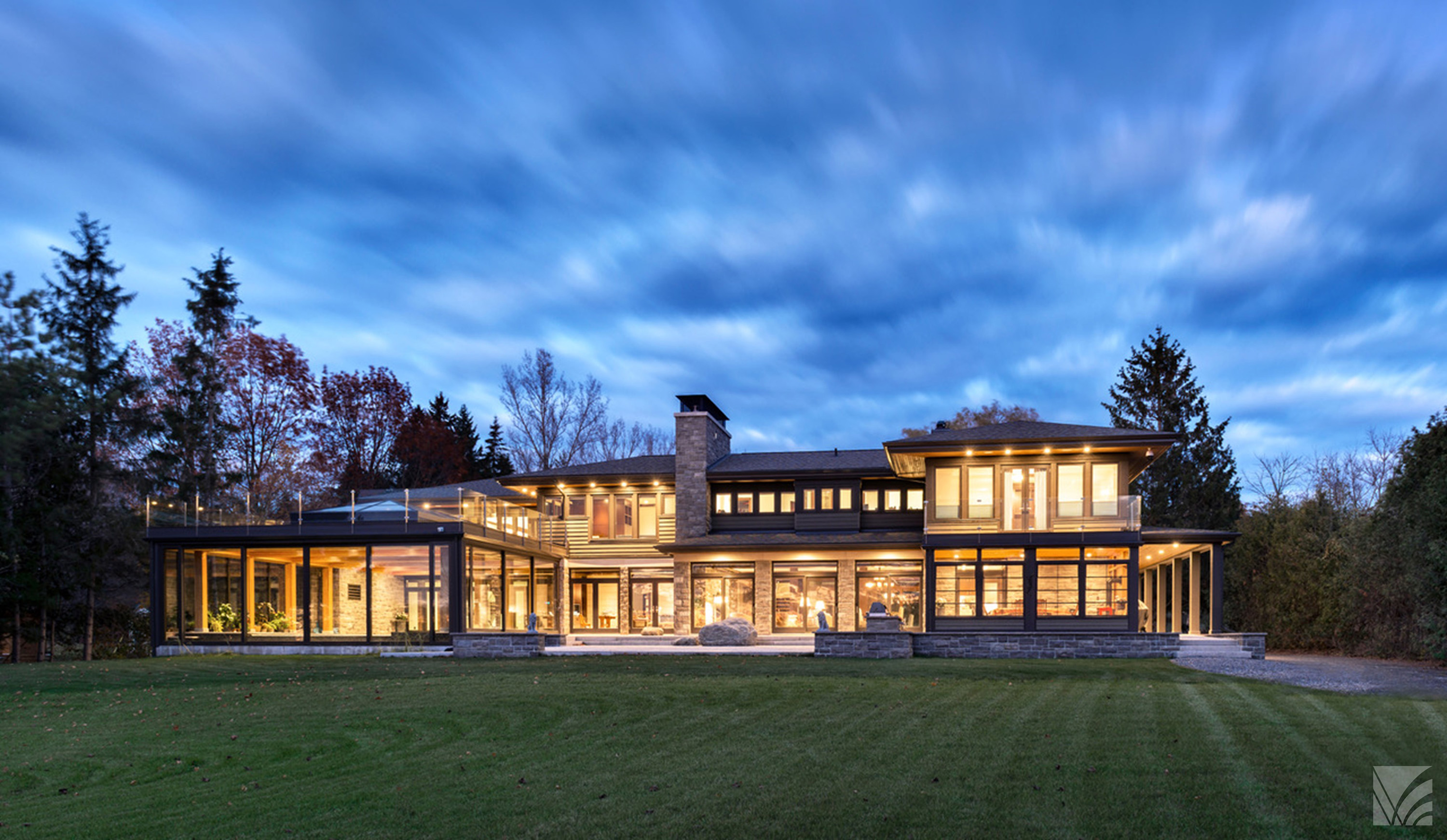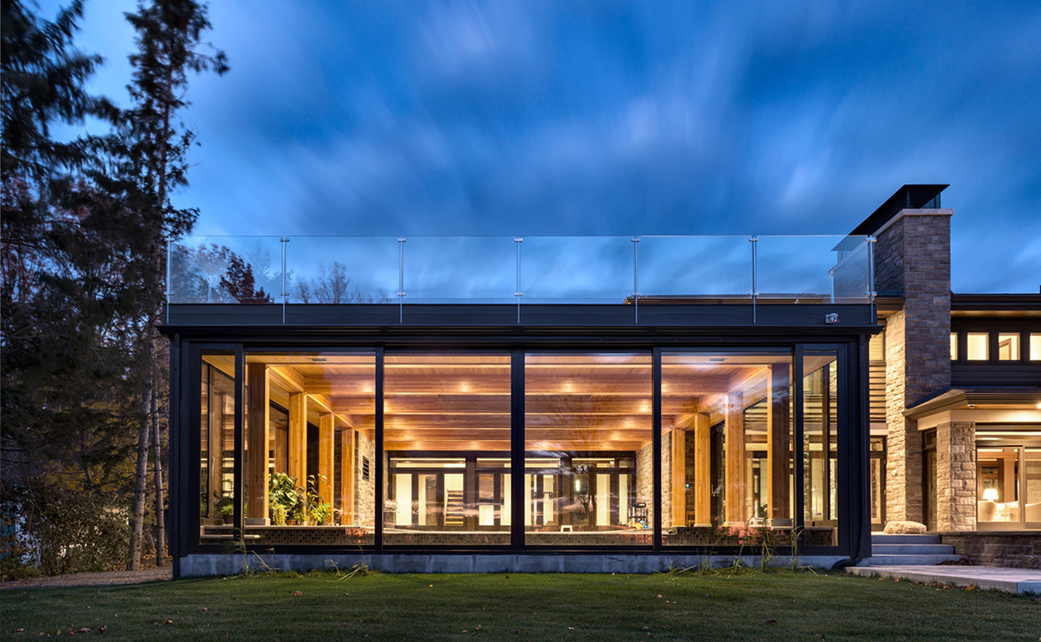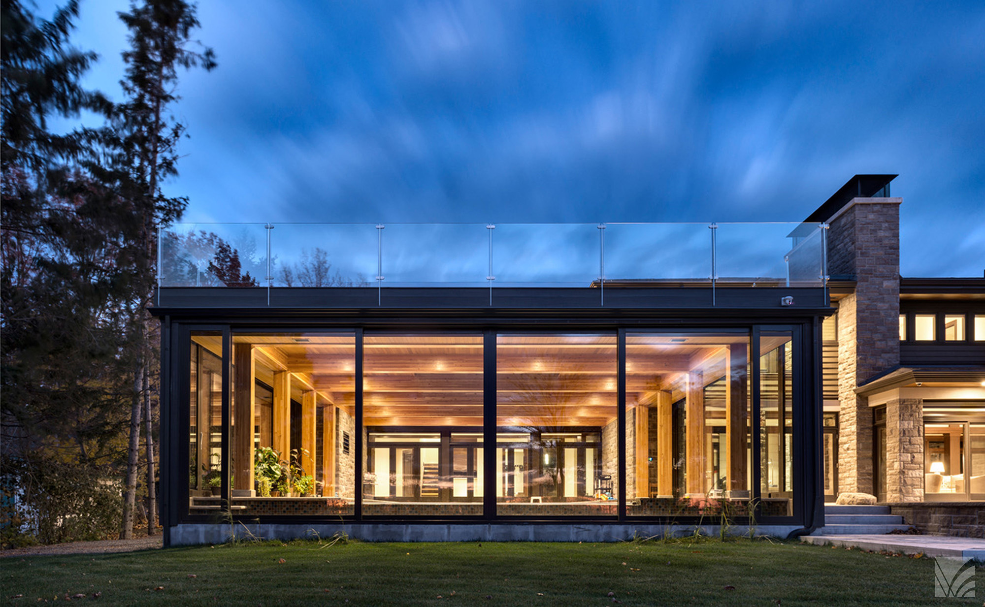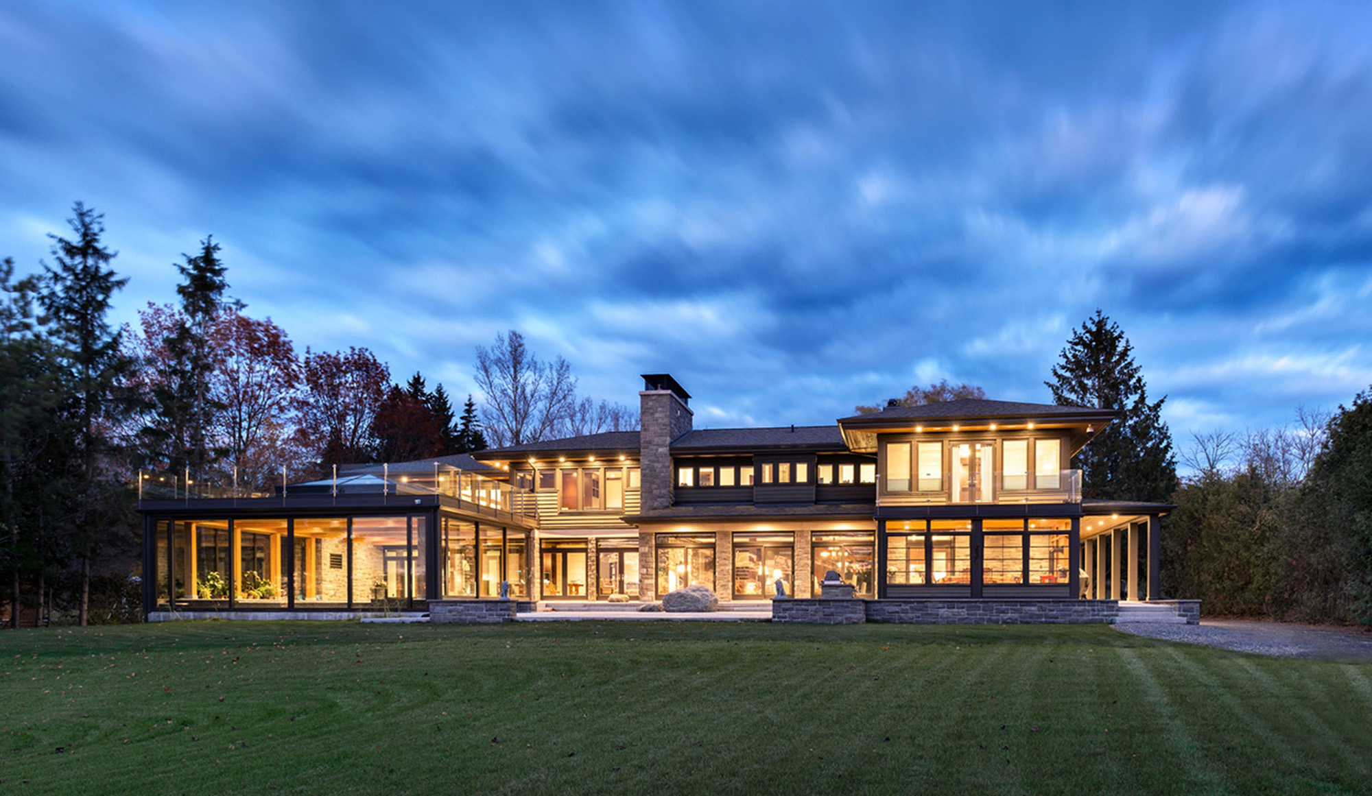 The Rideau River House, situated on the banks of the historic Rideau Water Way, blends traditional prairie-style architecture, an indoor pool and contemporary indoor-outdoor living to create a dwelling that highlights an effortless harmony between the garden lot, and the river.
