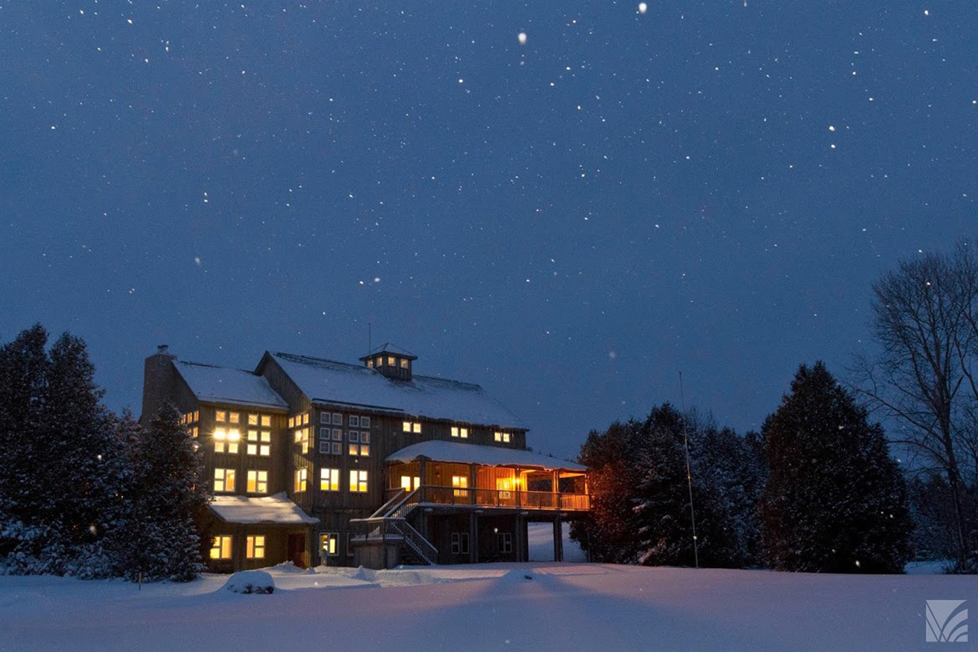 The main lodge was built using insulated concrete forms, long span, concrete core slab floors, and light wood framing with exposed wood trusses in the great hall.