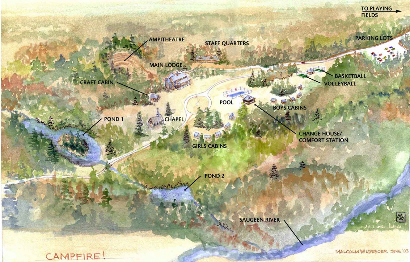 Campfire! is a Summer Youth Camp with year-round facilities. The camp is located on sprawling a 100 acres of forests, rivers, ponds, and grassy open fields, north of Markdale, Ontario. VWA were engaged to plan and design the camp from the ground up, locating the camp buildings and amenities, plan for new road, power and water infrastructure, and create a place for children to camp, play and learn in nature. The design of the camp strikes a balance of providing an authentic wilderness experience, while providing full amenities and being fully accessible.