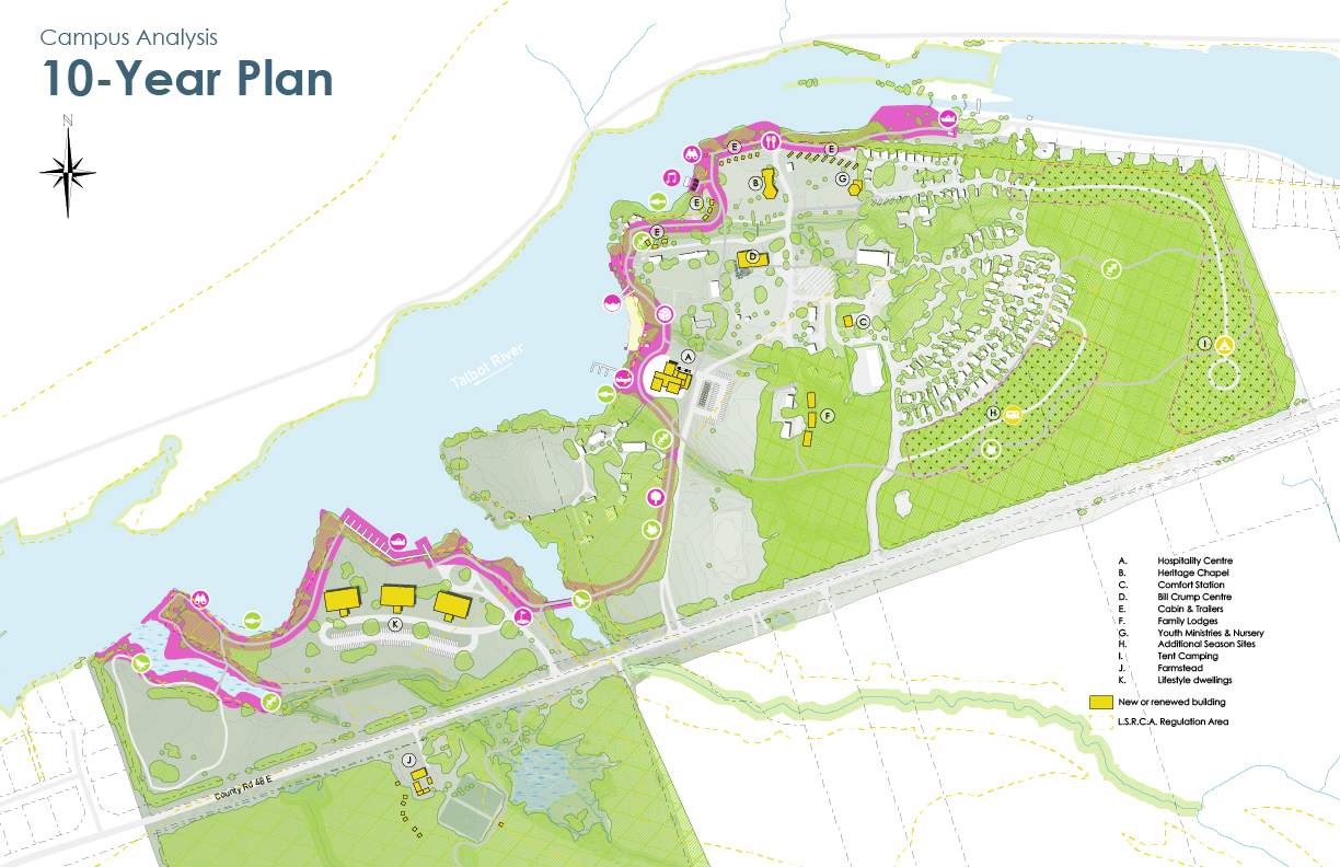 Fair Havens Bible Camp has been a beloved retreat for campers of all ages for over 80 years. The masterplan, completed in 2022, takes a holistic approach to revitalizing the camp's buildings and ecology while restoring its connection to the Trent Severn Waterway. The plan aims to modernize amenities, streamline site traffic, and unify the architectural language, all while preserving the camp's relationship with nature.