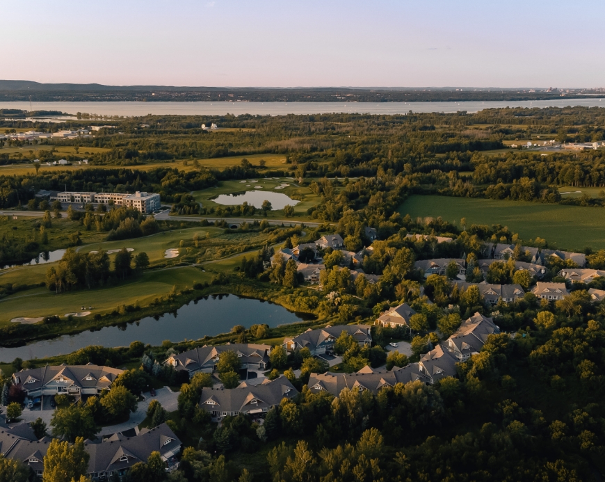 Designed for an adult lifestyle, this tranquil retreat sits beside the Marshes Golf Club, offering a seamless blend of comfort and natural beauty. Built in 2006 by the Kanata Research Park Corporation, the two-phase development consists of 104 townhomes. Winding streets preserve the beauty of the surroundings, including existing trees, rock outcroppings, and tranquil marshes. Each home is thoughtfully crafted with natural materials, with unique floor plans that reflect a connection to the environment.